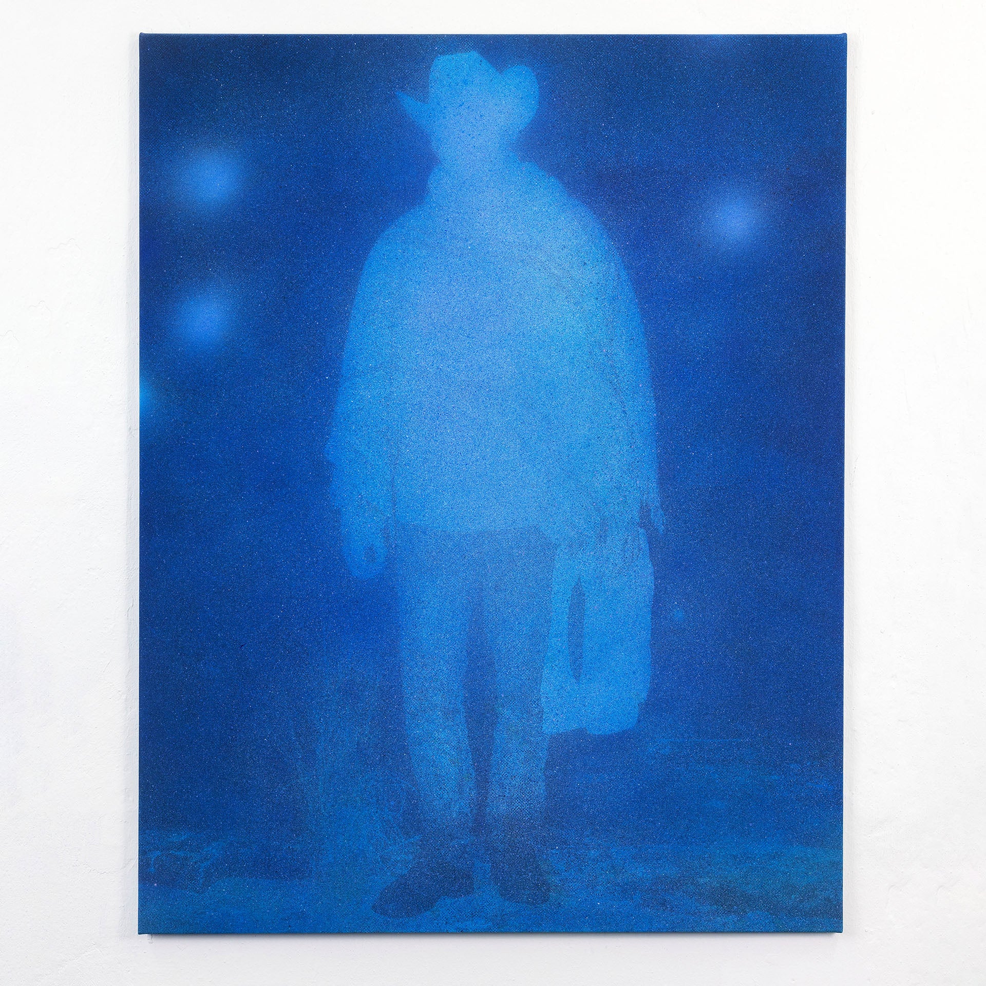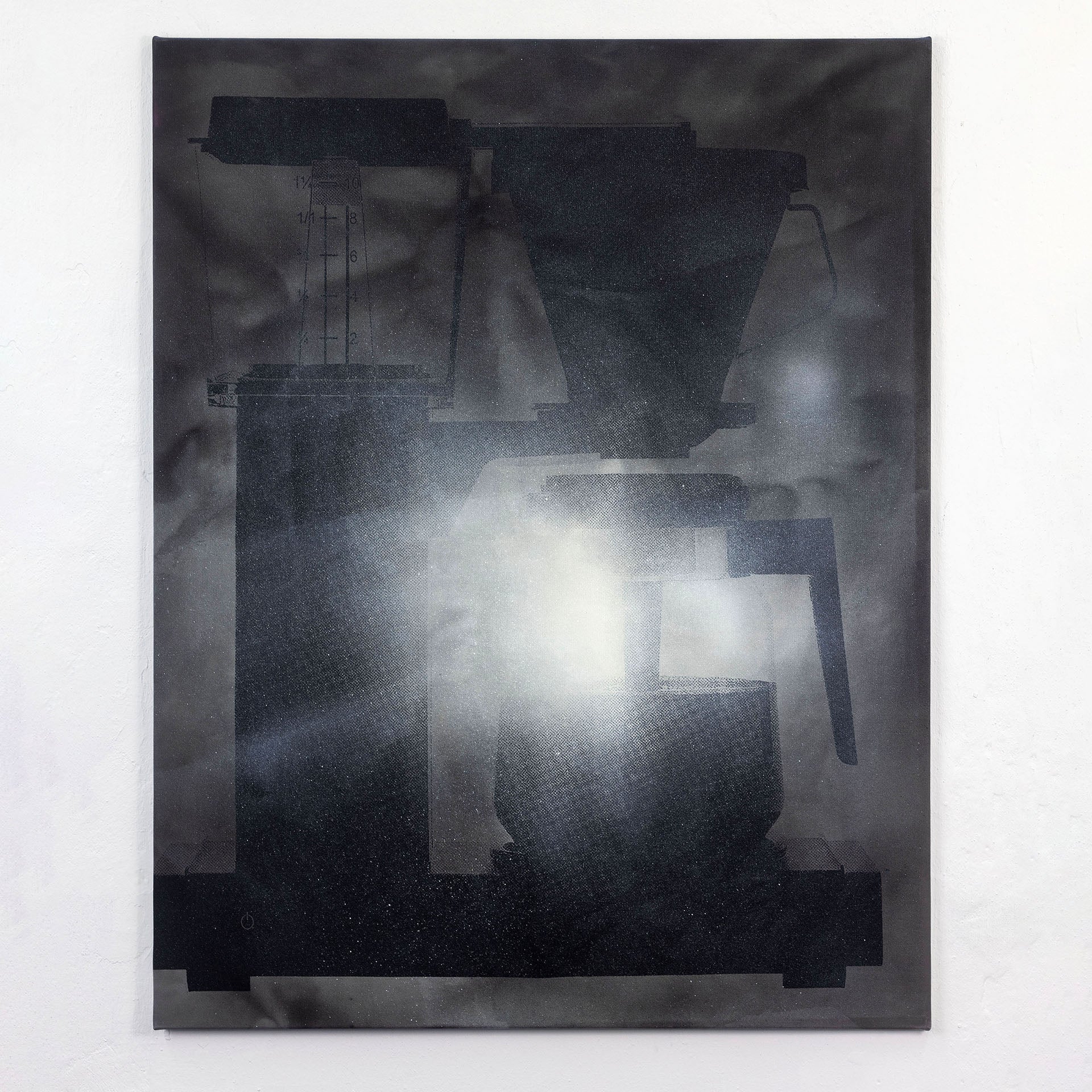 Anders Kjellesvik relates his material-based approach to August Strindberg's 'chance in artistic creation,' where the artist relinquishes control over the final result, allowing time and their surroundings to influence the character of the artwork. Similar to Strindberg’s celestographs—experimental paintings that the Swedish writer created by exposing light-sensitive plates to natural conditions—Kjellesvik utilizes pigment printing in combination with a slow painting process to observe how the materiality of the paint reveals its ambiguous narratives over time. Rasterized monochrome photographs are printed using mechanical heat transfer onto the canvas, upon which the artist builds layers through mono-printing, spray, airbrush, pigments and binders.
