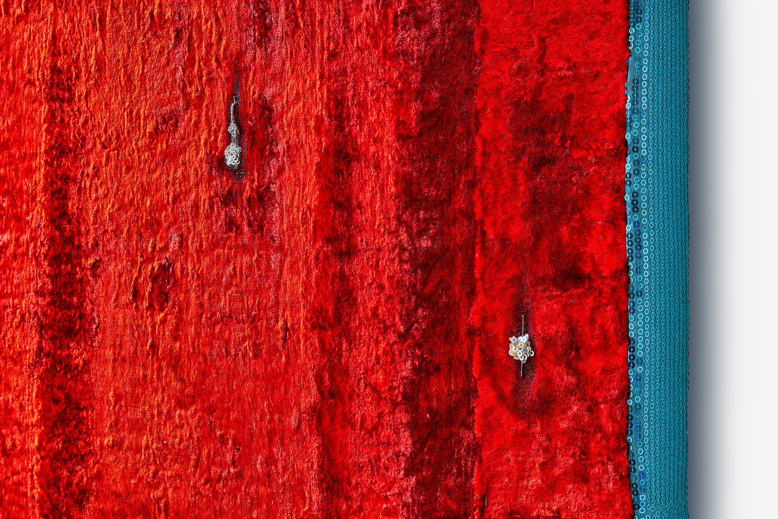 Gulnur Mukazhanova delves into Kazakh society and post-nomadic identities. By exploring visual practices developed in nomadic communities, the artist strikes a balance between traditional and digital techniques using ancestral felting techniques from the region. In contrast to her handfelted textiles, Margret Eicher creates digital tapestries that explore the glamorization of celebrities and their commodification as icons in our collective unconscious. Eicher‘s work comments on mass production through industrial printing, while Christoph Steinmeyer challenges the fundamental notion of originality in art with his neo-surrealist paintings, sparking conceptual debates about the value of reproduction.
